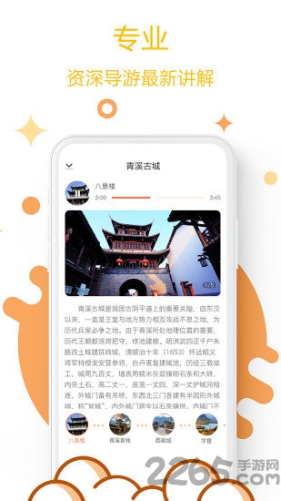 1、为游客提供景点的语音解说服务,每一个景点都蕴含独特的故事。通过真实声音娓娓道来,实现边走边听、声随景动的全新游览方式,目前已覆盖全国各大城市及景区。